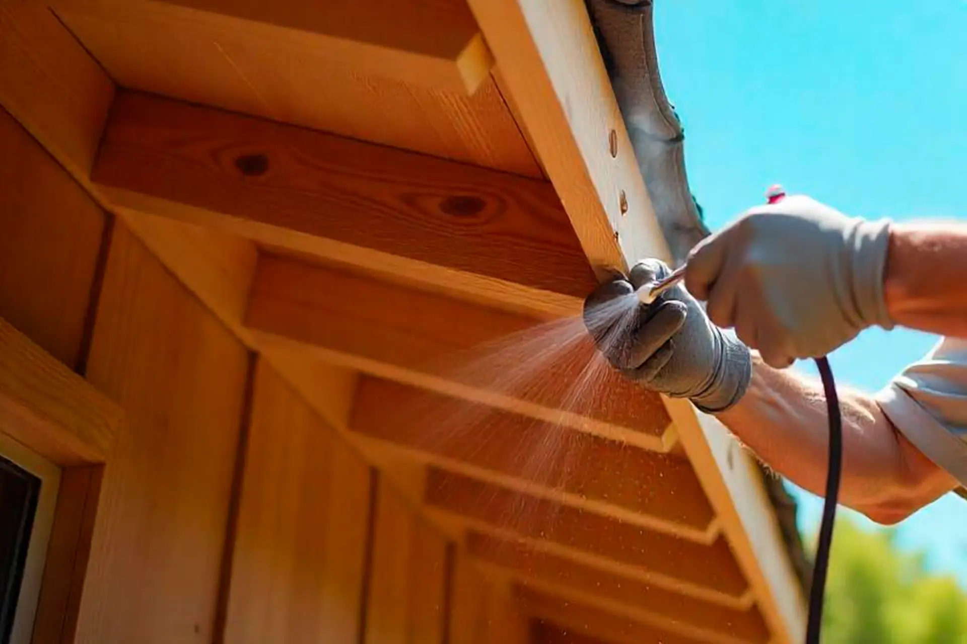 Woodguard проникає глибоко в структуру деревини, створюючи термостійкий бар’єр.